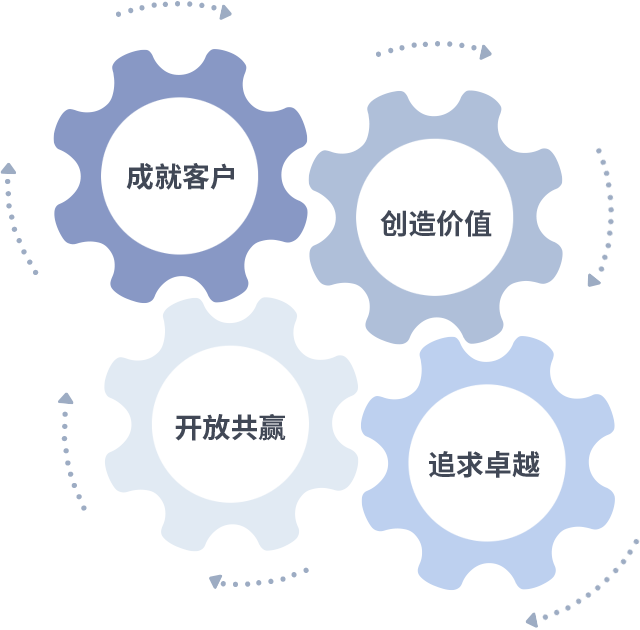 成就客户是一切决策的出发点,创造价值是衡量所有工作的标准,追求卓越是速盈做事做人的态度,开放共赢是速盈的格局也是最终的结果。价值观的齿轮环环相扣,推动着组织里的每个人不断向前。